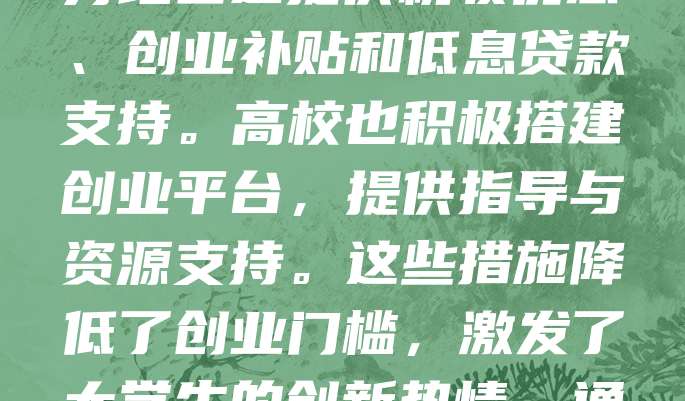 近年来,国家大力支持大学生创业,推出多项优惠政策。其中,大学生创业可享受营业执照办理的减免政策,如免收工本费、年检费等。部分地区还提供税收优惠、创业补贴和低息贷款支持。高校也积极搭建创业平台,提供指导与资源支持。这些措施降低了创业门槛,激发了大学生的创新热情。通过政策扶持,越来越多的大学生勇敢迈出创业第一步,为社会注入新鲜活力。创业者应充分利用政策优势,提升自身能力,实现梦想。