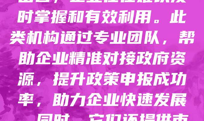 科技型中小企业政策咨询机构是为初创企业和科技创新企业提供政策解读、申报辅导和资源整合的专业服务机构。随着国家对科技创新的重视,各类扶持政策不断出台,企业往往难以及时掌握和有效利用。此类机构通过专业团队,帮助企业精准对接政府资源,提升政策申报成功率,助力企业快速发展。同时,它们还提供市场分析、融资建议等增值服务,增强企业的竞争力。在推动科技成果转化、优化营商环境方面发挥着重要作用,是连接企业与政策的重要桥梁。