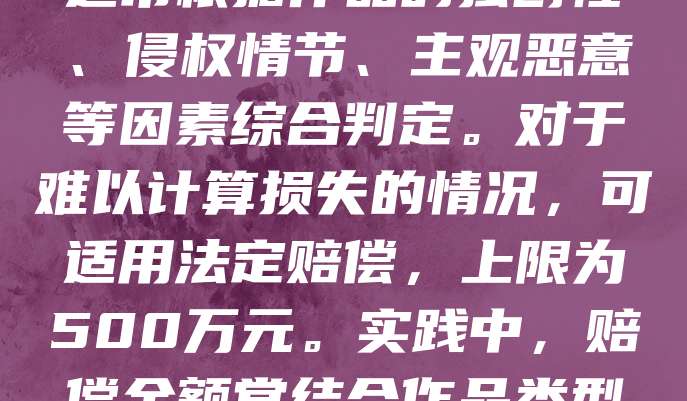 软著诉讼赔偿标准主要依据著作权法相关规定,包括实际损失、侵权获利及法定赔偿。法院通常根据作品的独创性、侵权情节、主观恶意等因素综合判定。对于难以计算损失的情况,可适用法定赔偿,上限为500万元。实践中,赔偿金额常结合作品类型、使用范围及侵权持续时间等因素酌情确定,旨在有效保护创作者权益,遏制侵权行为。