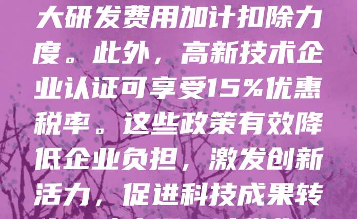 科技型中小企业是推动创新的重要力量,国家出台多项税收减免政策助力其发展。例如,对符合条件的科技型中小企业,减按5%或更低税率征收企业所得税,并加大研发费用加计扣除力度。此外,高新技术企业认证可享受15%优惠税率。这些政策有效降低企业负担,激发创新活力,促进科技成果转化。政府还通过税收优惠鼓励企业加大研发投入,提升核心竞争力。未来,随着政策持续优化,科技型中小企业将获得更多支持,为经济高质量发展注入强劲动力。