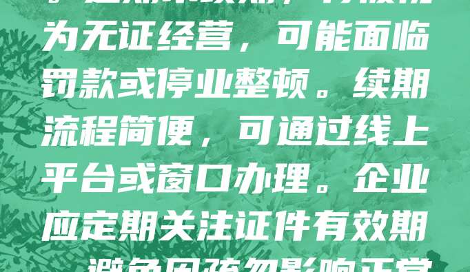 营业执照到期后需及时续期,以确保合法经营。企业应在有效期届满前30日内向市场监管部门提交延续申请,提供相关材料,如法人身份证明、经营场所证明等。逾期未续期,将被视为无证经营,可能面临罚款或停业整顿。续期流程简便,可通过线上平台或窗口办理。企业应定期关注证件有效期,避免因疏忽影响正常运营。同时,若经营范围、地址等信息变更,也应及时办理变更手续。保持营业执照有效,是企业合规经营的基础,有助于提升信誉和市场竞争力。