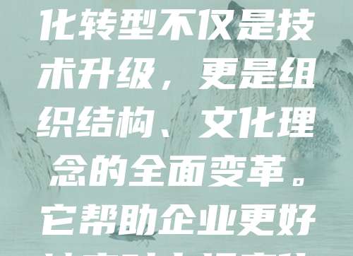 数字化转型是企业利用数字技术提升效率、优化流程、创新商业模式的过程。随着信息技术的快速发展,传统行业正加速向智能化、数据化迈进。通过大数据、云计算、人工智能等技术,企业能够实现精准决策、个性化服务和高效运营。数字化转型不仅是技术升级,更是组织结构、文化理念的全面变革。它帮助企业更好地应对市场变化,增强竞争力。在当前环境下,数字化转型已成为企业可持续发展的关键路径。无论是制造业、零售业还是服务业,拥抱数字化才能赢得未来。企业应积极布局,培养数字人才,构建灵活的IT系统,以实现高质量发展。