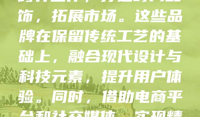 近年来,传统服饰老字号积极拥抱创新,焕发新生机。如“恒源祥”通过联名设计师、推出国潮系列,吸引年轻消费者;“上海牌”手表则跨界合作,打造时尚配饰,拓展市场。这些品牌在保留传统工艺的基础上,融合现代设计与科技元素,提升用户体验。同时,借助电商平台和社交媒体,实现精准营销,扩大品牌影响力。老字号的创新不仅传承了文化精髓,更在新时代中找到可持续发展路径,成为传统与现代交融的典范。