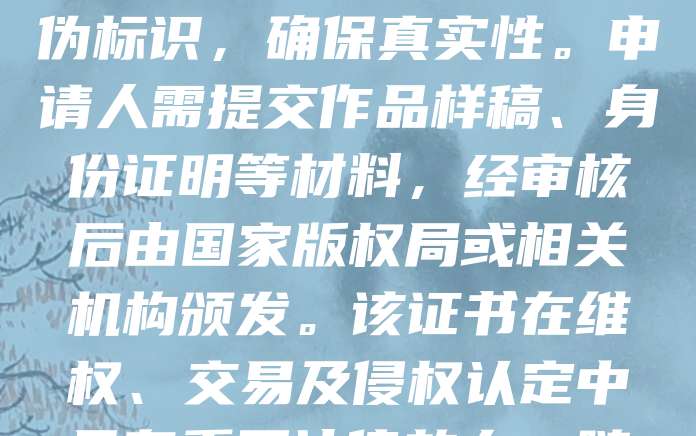 版权登记证书是证明作品著作权归属的重要法律文件。其样本通常包括作品名称、作者信息、登记号、颁发机构及日期等关键信息。证书采用统一格式,印有防伪标识,确保真实性。申请人需提交作品样稿、身份证明等材料,经审核后由国家版权局或相关机构颁发。该证书在维权、交易及侵权认定中具有重要法律效力。随着数字内容的发展,版权登记日益受到重视,有助于保护创作者权益,促进文化产业健康发展。建议创作者及时办理登记,增强作品的法律保障。