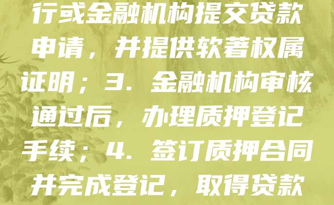 软著质押融资是指企业将软件著作权作为抵押物向金融机构申请贷款。操作流程包括:1. 评估软著价值,委托专业机构进行评估;2. 向银行或金融机构提交贷款申请,并提供软著权属证明;3. 金融机构审核通过后,办理质押登记手续;4. 签订质押合同并完成登记,取得贷款资金。融资后需按期还款,若违约,金融机构有权处置质押软著。该模式有助于科技企业盘活无形资产,拓宽融资渠道。