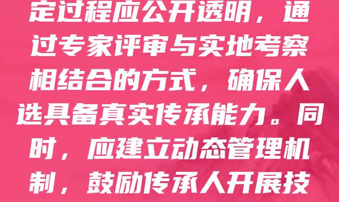 地标产品传承人是保护和弘扬地方特色文化的重要力量。其资格认定需综合考量传承人的技艺水平、文化认知、社会影响力及传承意愿。认定过程应公开透明,通过专家评审与实地考察相结合的方式,确保人选具备真实传承能力。同时,应建立动态管理机制,鼓励传承人开展技艺推广与创新,推动地标产品可持续发展。唯有如此,才能真正实现文化遗产的活态传承,让传统技艺在新时代焕发新生机。