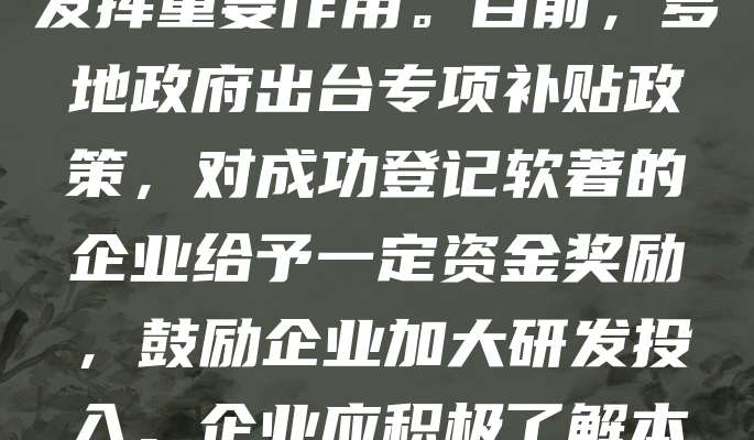 科技型中小企业通过申请软件著作权(软著)可享受政府补贴,有助于提升企业创新能力和知识产权保护水平。软著申请不仅能增强企业核心竞争力,还能在融资、招投标及政策扶持中发挥重要作用。目前,多地政府出台专项补贴政策,对成功登记软著的企业给予一定资金奖励,鼓励企业加大研发投入。企业应积极了解本地政策,及时提交申请材料,确保合规高效完成软著登记,最大化享受政策红利。同时,建议企业加强知识产权管理,构建完善的创新体系,为长远发展奠定基础。