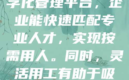 科技型中小企业在快速发展中面临人才需求灵活与成本控制的双重挑战。采用灵活用工方案,如兼职、外包、远程协作等方式,可有效降低人力成本,提升运营效率。通过搭建数字化管理平台,企业能快速匹配专业人才,实现按需用人。同时,灵活用工有助于吸引高端技术人才,增强企业创新力。建议企业结合自身发展阶段,合理设计用工结构,强化绩效考核与团队协作,确保灵活性与稳定性并存,助力企业可持续发展。