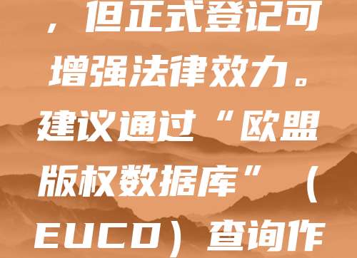 欧盟版权登记流程相对简便,创作者可通过各国的知识产权局或欧盟版权组织进行登记。通常需提交作品样本、作者信息及创作日期等资料。部分国家采用自动登记制度,作品一经创作即受保护,但正式登记可增强法律效力。建议通过“欧盟版权数据库”(EUCD)查询作品信息,确保权利清晰。此外,数字时代推荐使用区块链技术进行时间戳认证,提升版权保护力度。整体而言,欧盟鼓励创作者积极登记,以保障自身合法权益,促进文化与创新产业发展。