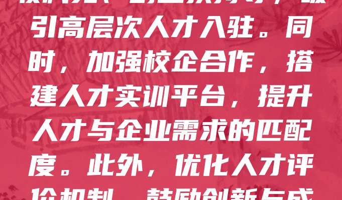 科技型中小企业是推动创新驱动发展的重要力量,人才引进政策对其发展至关重要。当前,各地政府纷纷出台优惠政策,如提供住房补贴、税收减免、创业扶持等,吸引高层次人才入驻。同时,加强校企合作,搭建人才实训平台,提升人才与企业需求的匹配度。此外,优化人才评价机制,鼓励创新与成果转化,激发人才活力。未来,应进一步完善政策体系,营造良好的人才生态环境,助力科技型中小企业持续健康发展。