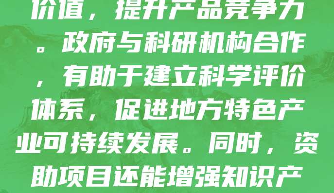 地理标志科研项目资助对推动区域特色经济发展具有重要意义。通过专项资金支持,可深入研究地理标志产品的独特性、保护机制及市场价值,提升产品竞争力。政府与科研机构合作,有助于建立科学评价体系,促进地方特色产业可持续发展。同时,资助项目还能增强知识产权保护意识,助力乡村振兴。未来应加大投入力度,完善政策支持,推动地理标志成为区域经济高质量发展的新引擎。