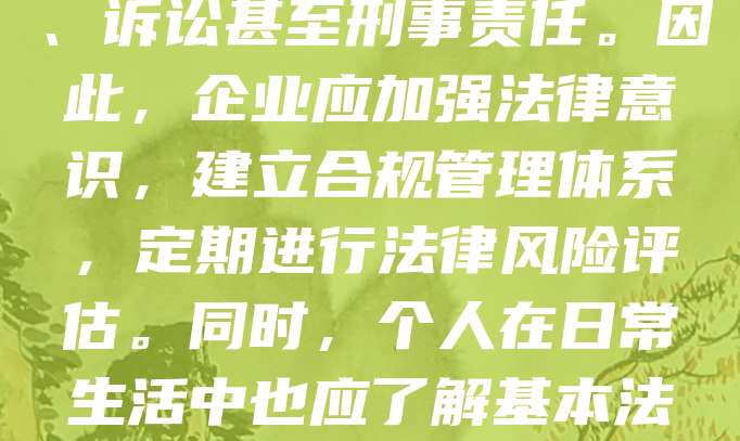 法律与风险密不可分。企业在经营过程中,必须遵守相关法律法规,以降低法律风险。法律不仅规范行为,也为风险防控提供依据。一旦违反法律,可能面临罚款、诉讼甚至刑事责任。因此,企业应加强法律意识,建立合规管理体系,定期进行法律风险评估。同时,个人在日常生活中也应了解基本法律知识,避免因无知而陷入法律纠纷。法律是维护社会秩序的基石,也是防范风险的重要工具。只有依法行事,才能有效规避潜在风险,保障自身权益。