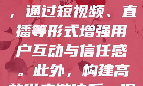 科技型中小企业在电商运营中应注重精准定位与数据驱动。首先,明确目标用户群体,结合产品特点制定差异化营销策略。其次,利用大数据分析用户行为,优化商品展示与推荐算法,提升转化率。同时,加强线上品牌建设,通过短视频、直播等形式增强用户互动与信任感。此外,构建高效供应链体系,保障物流时效与售后服务,提升用户体验。最后,借助电商平台工具与第三方服务,降低运营成本,提高效率。科技型中小企业应持续创新,灵活调整策略,以适应快速变化的市场环境,实现可持续增长。