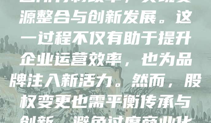 老字号企业股权变更,是传统与现代融合的重要标志。随着市场环境变化,许多老字号通过引入战略投资者或实施混合所有制改革,实现资源整合与创新发展。这一过程不仅有助于提升企业运营效率,也为品牌注入新活力。然而,股权变更也需平衡传承与创新,避免过度商业化损害品牌文化。未来,老字号应在保持核心价值的基础上,借助资本力量拓展市场,实现可持续发展。