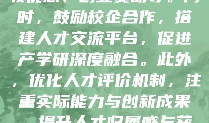 科技型中小企业是推动创新的重要力量,人才引进政策对其发展至关重要。为吸引高端人才,政府出台多项扶持措施,如提供住房补贴、税收优惠、创业资助等。同时,鼓励校企合作,搭建人才交流平台,促进产学研深度融合。此外,优化人才评价机制,注重实际能力与创新成果,提升人才归属感与获得感。通过完善政策体系,营造良好的人才发展环境,助力科技型中小企业突破技术瓶颈,增强核心竞争力,推动区域经济高质量发展。
