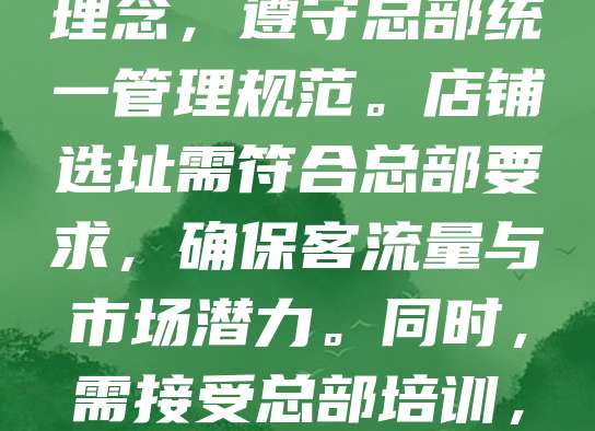 老字号连锁加盟需满足多项条件:首先,加盟商需具备合法经营资质和良好信誉;其次,需有一定的资金实力,以支付加盟费、保证金及初期运营成本;此外,应认同品牌文化与经营理念,遵守总部统一管理规范。店铺选址需符合总部要求,确保客流量与市场潜力。同时,需接受总部培训,掌握产品制作与经营管理技能。老字号品牌通常注重品质与传统,加盟商需保持一致的服务标准,维护品牌形象。通过严格筛选与系统培训,确保加盟门店的稳定运营与品牌声誉。