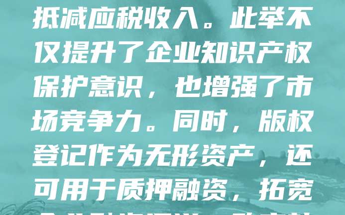 企业版权登记可享受税收优惠政策,有助于降低企业研发成本,激励创新。根据相关政策,企业将自主创作的软件、文学艺术作品等进行版权登记后,可在计算应纳税所得额时按规定比例抵减应税收入。此举不仅提升了企业知识产权保护意识,也增强了市场竞争力。同时,版权登记作为无形资产,还可用于质押融资,拓宽企业融资渠道。政府鼓励企业积极进行版权登记,推动文化产业和科技创新发展,助力经济高质量转型。企业应充分了解并利用好这一政策,提升自身核心竞争力。