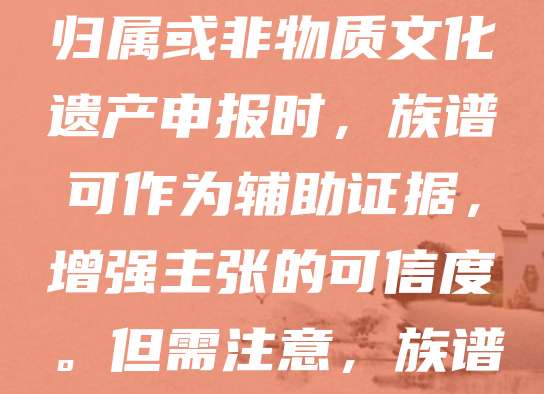 老字号族谱可作为证据,尤其在法律纠纷、产权认定或文化传承中具有参考价值。族谱记录家族世系、迁徙历史及重要事件,能证明血缘关系与历史延续性。在涉及祖产继承、商标权归属或非物质文化遗产申报时,族谱可作为辅助证据,增强主张的可信度。但需注意,族谱应结合其他书面材料(如契约、官方记录)共同使用,以提高其法律效力。随着社会对传统文化重视加深,老字号族谱的价值日益凸显,成为连接过去与未来的重要纽带。
