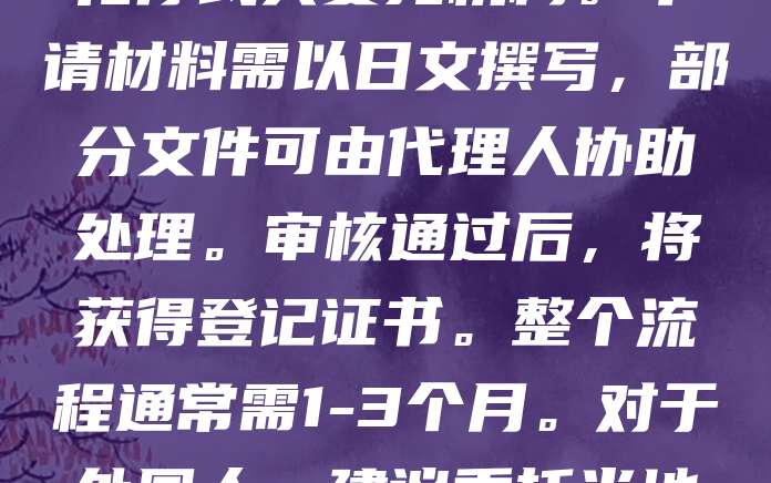 日本软著(软件著作权)申请需通过日本文化厅进行。申请人需准备软件源代码、说明书及登记申请表,并提交至文化厅或其委托机构。申请材料需以日文撰写,部分文件可由代理人协助处理。审核通过后,将获得登记证书。整个流程通常需1-3个月。对于外国人,建议委托当地律师或代理机构办理,以确保符合日本法律要求。此外,日本对软件版权保护严格,及时登记有助于维护合法权益。