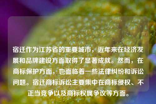 宿迁作为江苏省的重要城市,近年来在经济发展和品牌建设方面取得了显著成就。然而,在商标保护方面,也面临着一些法律纠纷和诉讼问题。宿迁商标诉讼主要集中在商标侵权、不正当竞争以及商标权属争议等方面。