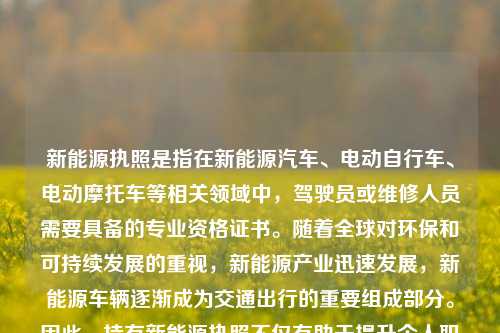 新能源执照不仅是技术能力的体现,更是未来职业发展的关键。随着新能源产业的不断壮大,拥有相关执照将为个人带来更多的机遇和发展空间。