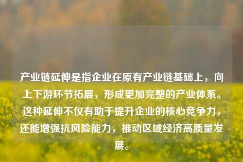 产业链延伸是指企业在原有产业链基础上,向上下游环节拓展,形成更加完整的产业体系。这种延伸不仅有助于提升企业的核心竞争力,还能增强抗风险能力,推动区域经济高质量发展。