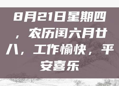 8月21日星期四,农历闰六月廿八,工作愉快,平安喜乐