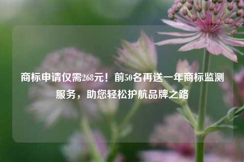 现在就行动,用268元开启您的品牌保护之旅,前50名还能免费获得一年商标监测服务,机会不容错过!