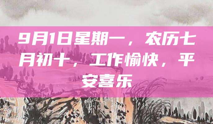 9月1日星期一,农历七月初十,工作愉快,平安喜乐