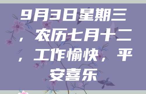 9月3日星期三,农历七月十二,工作愉快,平安喜乐