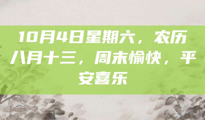 10月4日星期六,农历八月十三,周末愉快,平安喜乐
