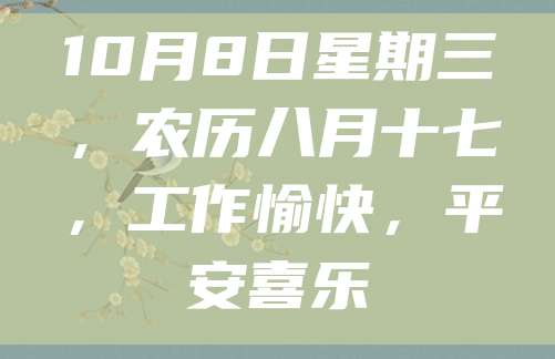 10月8日星期三,农历八月十七,工作愉快,平安喜乐
