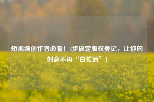 短视频创作者必看!3步搞定版权登记,让你的创意不再“白忙活”!