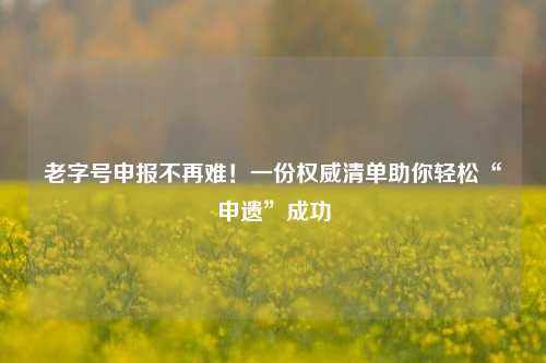 老字号申报不再难!一份权威清单助你轻松“申遗”成功