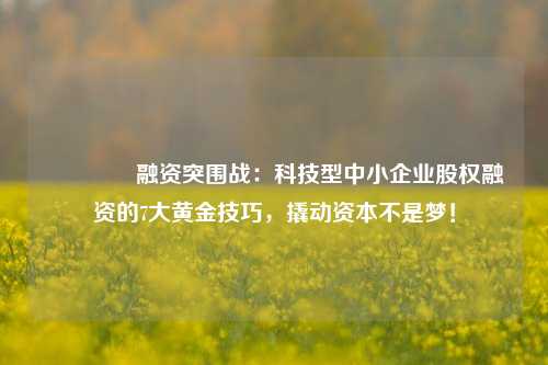 🔥融资突围战:科技型中小企业股权融资的7大黄金技巧,撬动资本不是梦!