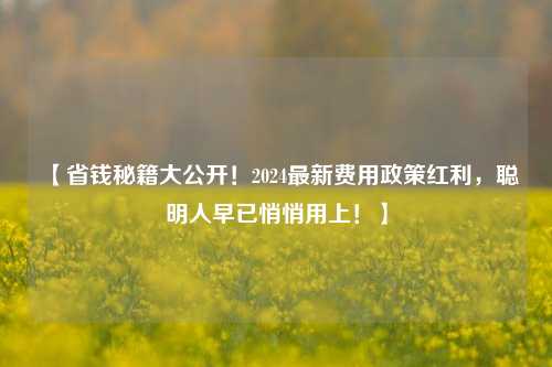 【省钱秘籍大公开!2024最新费用政策红利,聪明人早已悄悄用上!】