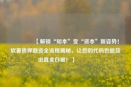 🔥【解锁“知本”变“资本”新姿势!软著质押融资全流程揭秘,让您的代码也能贷出真金白银!】🔥