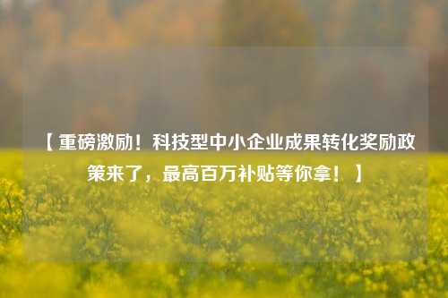 【重磅激励!科技型中小企业成果转化奖励政策来了,最高百万补贴等你拿!】