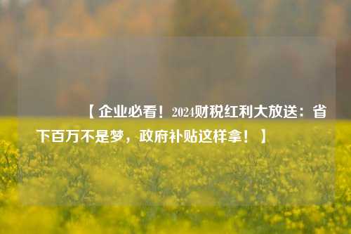 🔥【企业必看!2024财税红利大放送:省下百万不是梦,政府补贴这样拿!】🔥
