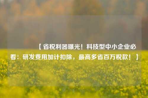 🔥【省税利器曝光!科技型中小企业必看:研发费用加计扣除,最高多省百万税款!】🔥