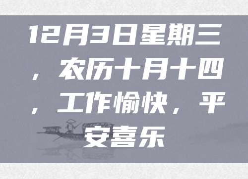 12月3日星期三,农历十月十四,工作愉快,平安喜乐