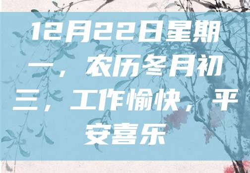 12月22日星期一,农历冬月初三,工作愉快,平安喜乐
