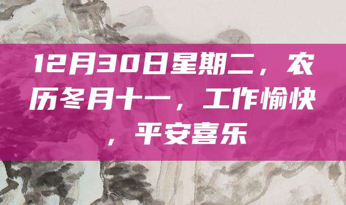 12月30日星期二,农历冬月十一,工作愉快,平安喜乐