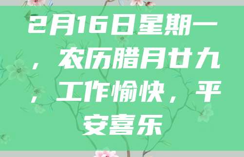 2月16日星期一,农历腊月廿九,工作愉快,平安喜乐