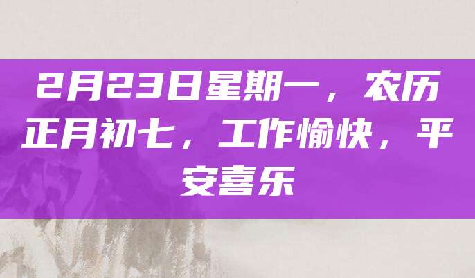 2月23日星期一,农历正月初七,工作愉快,平安喜乐