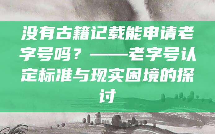 没有古籍记载能申请老字号吗?——老字号认定标准与现实困境的探讨