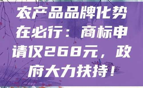 农产品品牌化势在必行:商标申请仅268元,政府大力扶持!