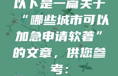 以下是一篇关于“哪些城市可以加急申请软著”的文章,供您参考: