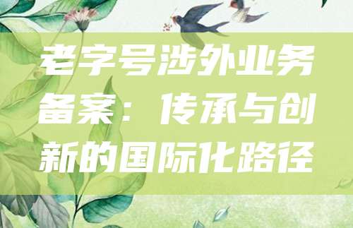 随着全球经济一体化进程的不断加快,中国老字号企业正面临着前所未有的机遇与挑战。作为中华优秀传统文化的重要载体,老字号企业不仅承载着深厚的历史积淀,也具备独特的品牌价值和市场竞争力。在国家推动高水平对外开放的大背景下,越来越多的老字号企业开始探索“走出去”的国际化发展路径。其中,涉外业务备案成为其拓展海外市场、实现合规经营的重要前提和保障。本文将围绕老字号涉外业务备案的背景、意义、流程及未来发展方向进行深入探讨。