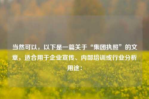 当然可以,以下是一篇关于“集团执照”的文章,适合用于企业宣传、内部培训或行业分析用途: